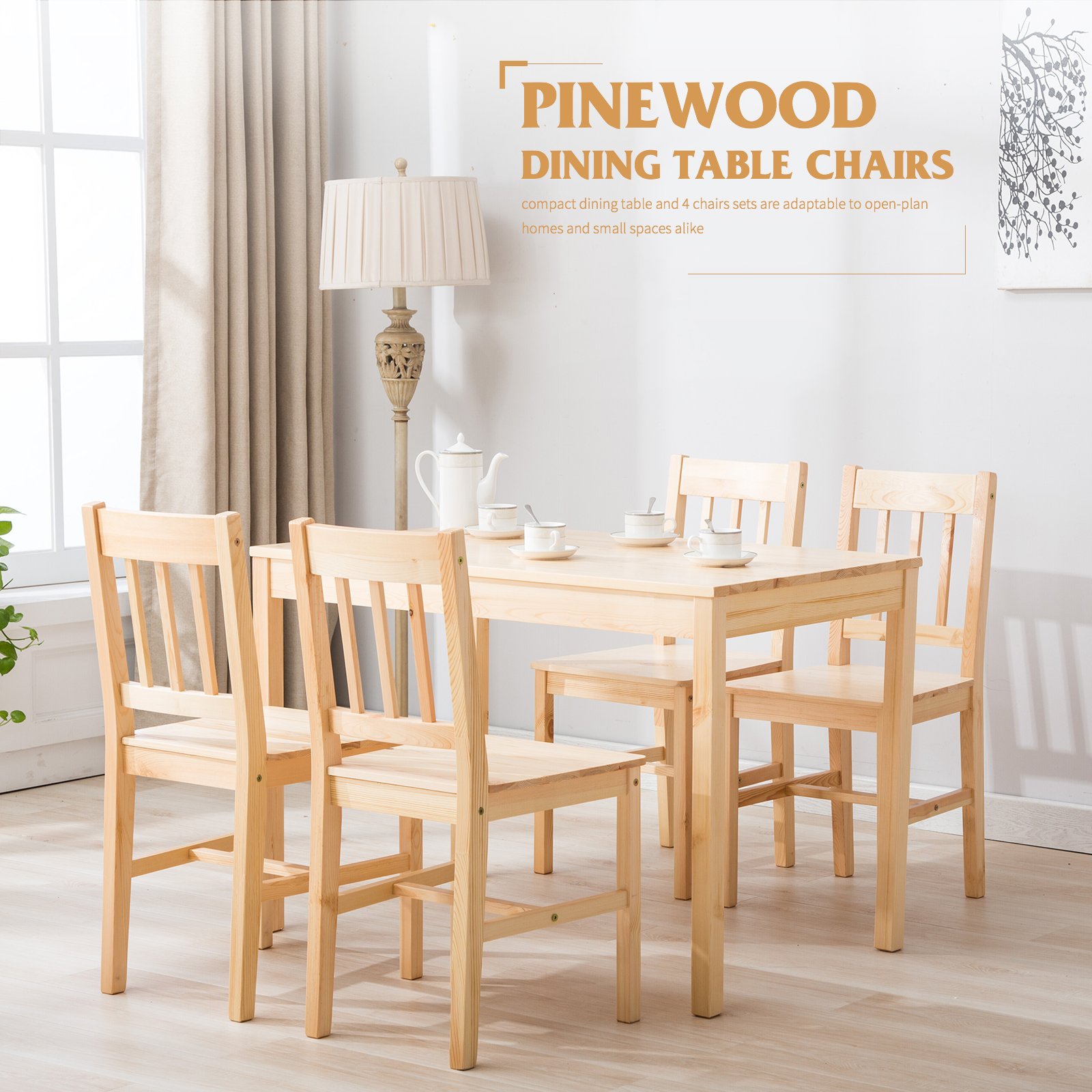 Mecor 5 Piece Kitchen Table Set Natural Pine Wood Table And 4