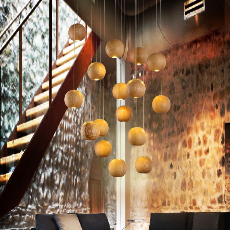 Modern Native Wood Handmade Wooden Chandelier Hanging Led Retro