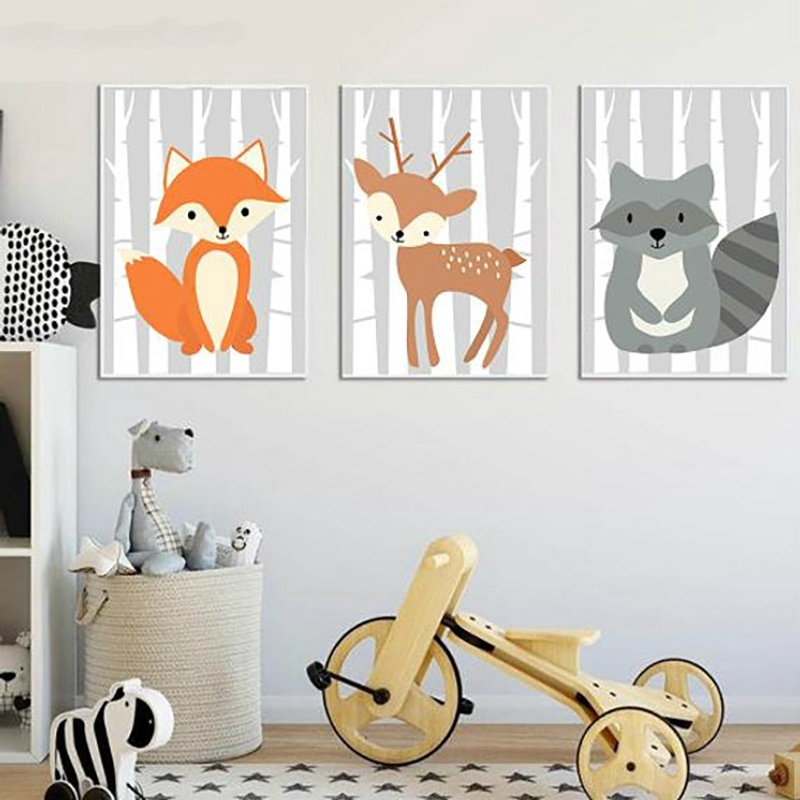 Deer Bear Fox Rabbit Raccoon Nursery Wall Art Canvas Painting