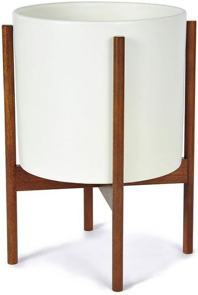 Ceramic Cylinder Planter With Wood Stand Pebble Buy Modernica
