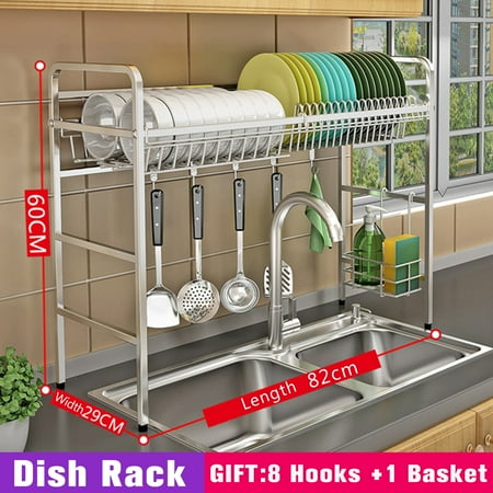 Stainless Steel Over The Sink Dish Rack Drying Bowl Plate Cup