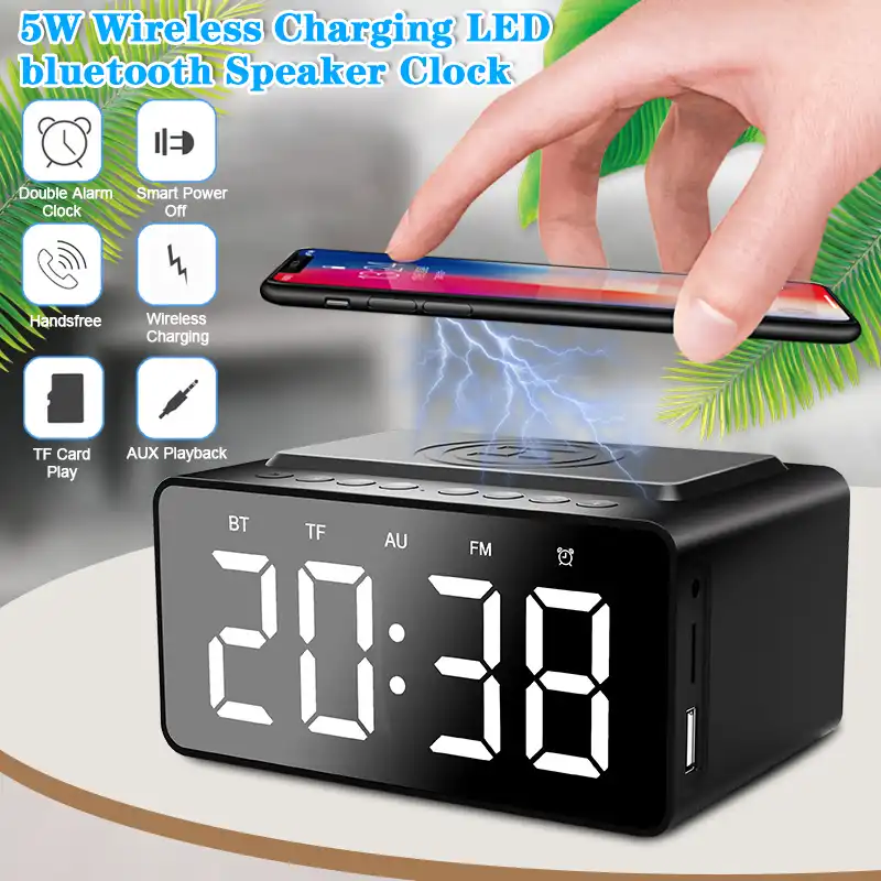 Desktop Bluetooth Speaker Wireless Stereo Alarm Clock Speakers