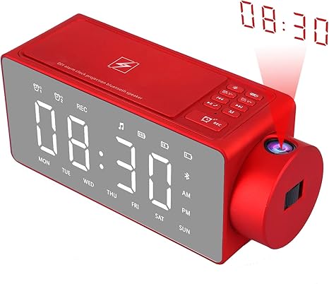 Htterino Projection Alarm Clock Bluetooth Speaker With Wireless