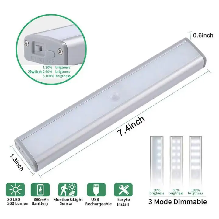 Led Closet Light 18 Led Dimmer Usb Rechargeable Motion Sensor
