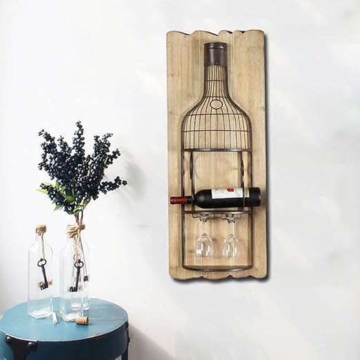 Amazon Com Sunbor Wall Mount Wine Rack Metal Bottle Stemware Holder Wood Handcrafted Modern Art Home Decor Bar Accessory Unique Design Creative Gift Home Kitchen